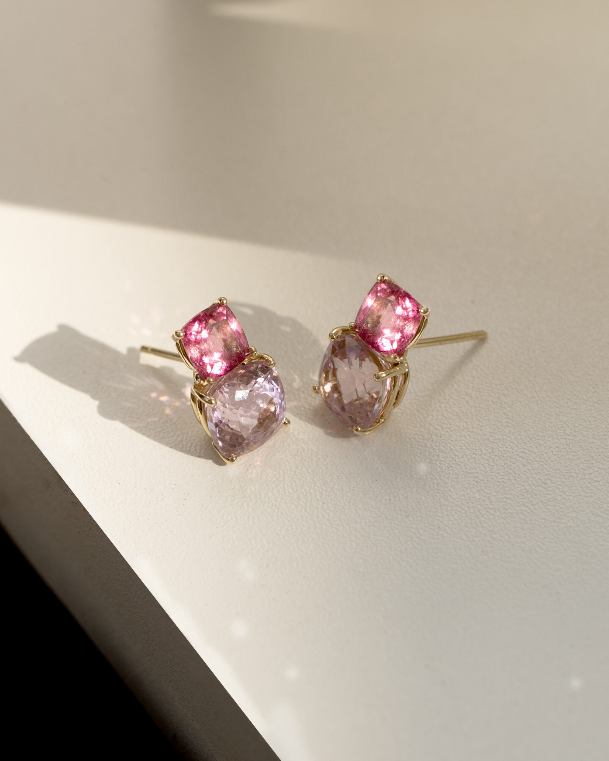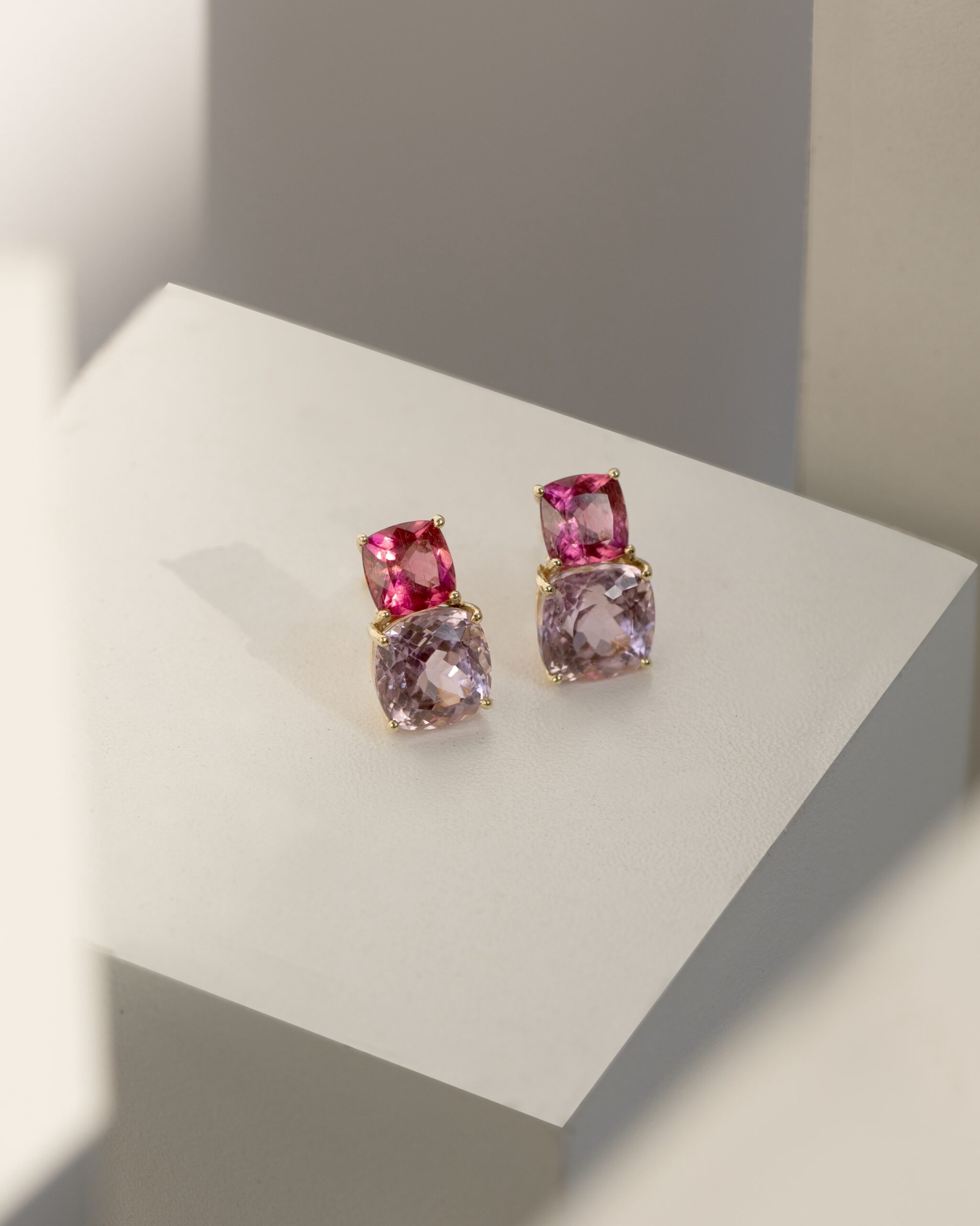 Turmalina rosa e kunzita em ouro amarelo 18k.