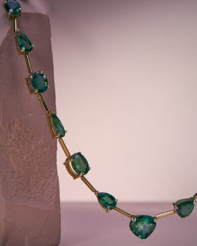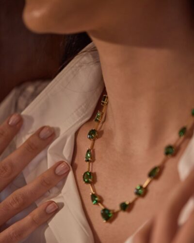 Turmalinas verdes (28,68cts) em ouro amarelo 18k.