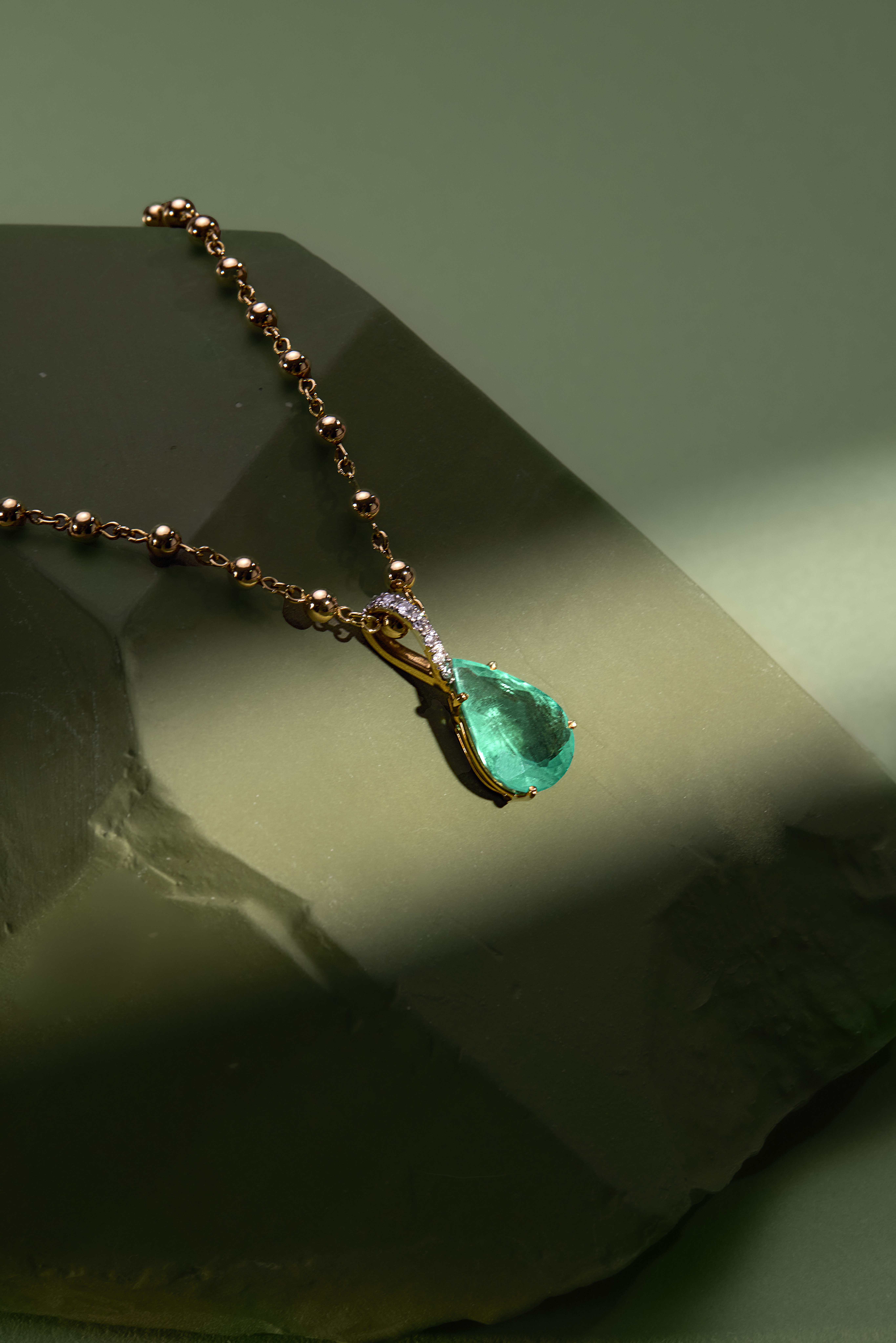 Esmeralda (8,13cts) e brilhantes (0,28cts) em ouro amarelo 18k.